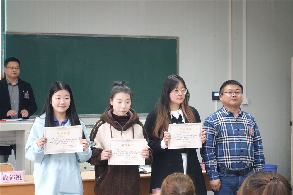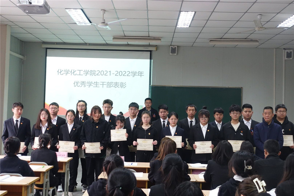 会议第四项,太阳成集团tyc33455cc官方网站优秀员工表彰仪式。团总支书记成沛锐宣读《太阳成集团tyc33455cc官方网站2021-2022学年优秀员工干部》、《2022-2023迎新优秀志愿者》和太阳成集团tyc33455cc官方网站第二课堂活动的获表彰同学名单。由党总支书记王永东、青年教师兼职团总支副书记武立州、学工办主任王瑜对以上员工进行颁奖。