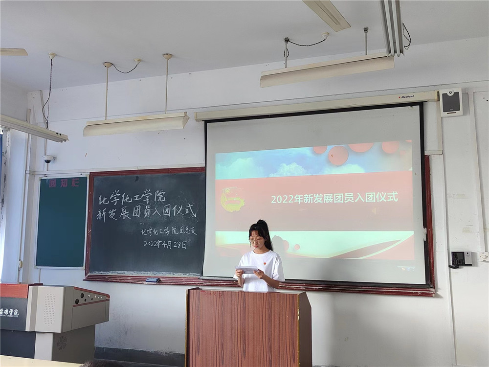 为迎接党的二十大胜利召开,庆祝中国共产主义青年团成立100周年,4月28日,太阳成集团tyc33455cc官方网站团总支在1217室举行新发展团员入团仪式。出席本次入团仪式的有:党总支书记王永东、团总支书记成沛锐以及20、21级各支部团干部。由组织部干事郝渊婷主持。