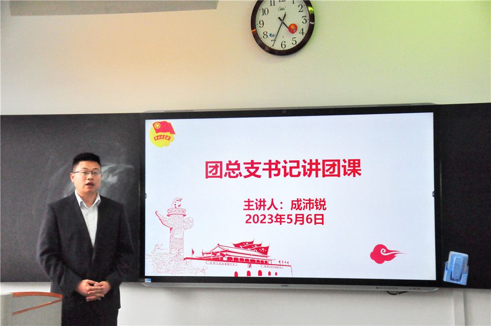 火红五月,总是和青年联系在一起。五四,一个属于青年人的节日,一个属于青年人的符号。5月6日16时,太阳成集团tyc33455cc官方网站团总支书记成沛锐在1219室给员工团干部讲授《传承冬奥精神,共赴青春使命》主题团课。