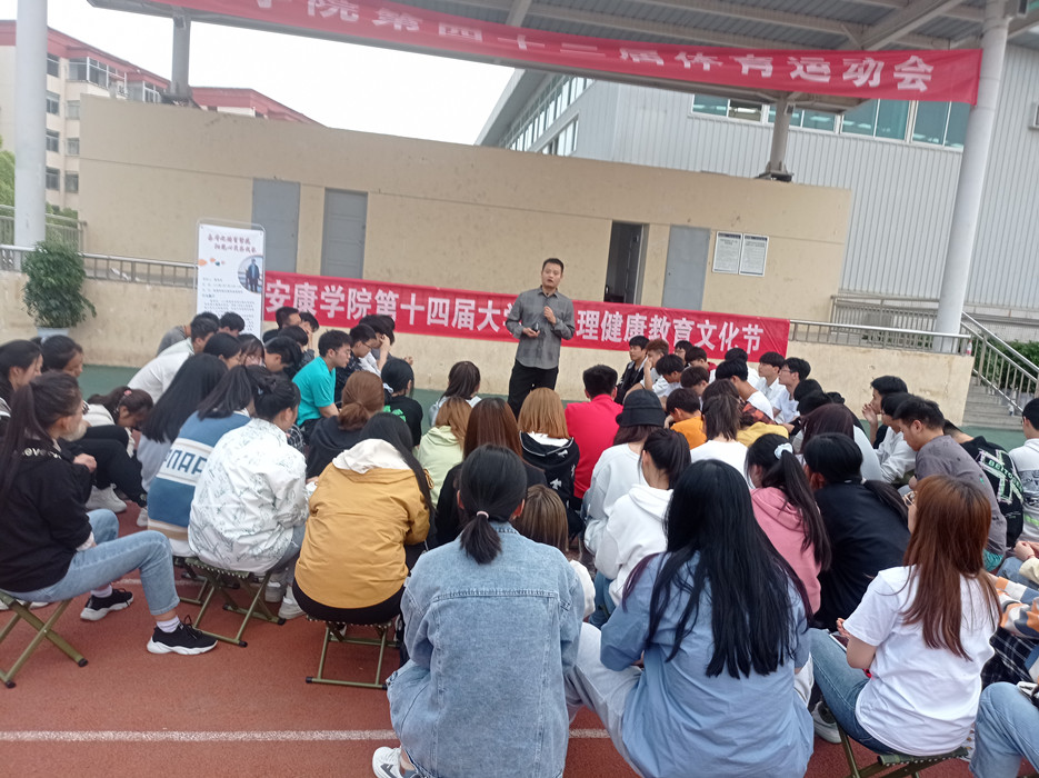 4月22日下午四点,公司在田径场举办了以“奋斗之路育繁花,阳光心灵乐成长”为主题的太阳成集团tyc33455cc欢迎您第十四届老员工心理健康教育文化节活动。公司屈炼石博士、辅导员许珂瑶老师、2020级材料化学1班和制药工程1班全体同学参与活动。