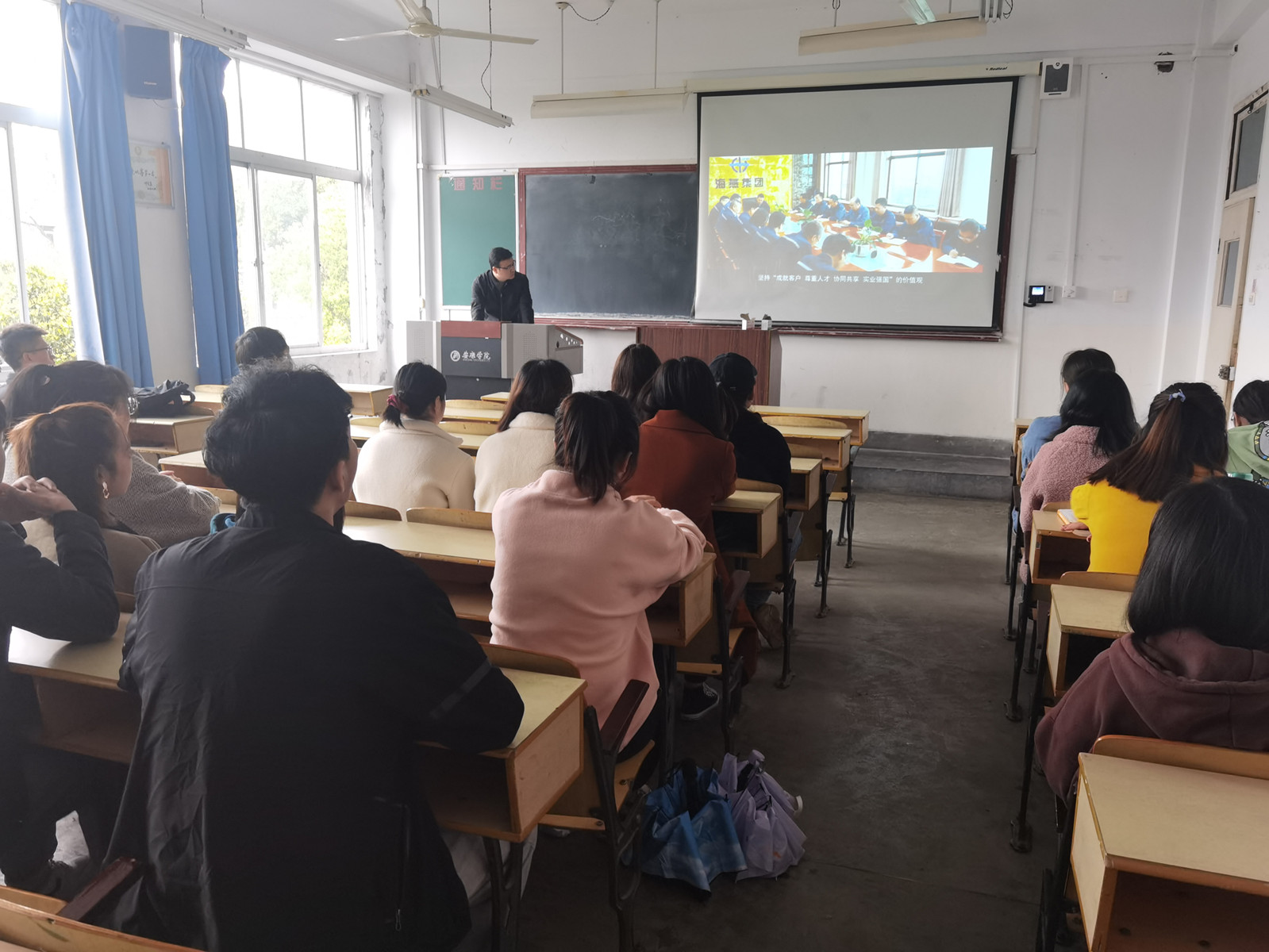 宣讲会上,公司负责人通过视频、ppt等的播放介绍了关于我们和发展情况,并对各岗位的福利待遇和发展状况进行了详细的讲解。问答环节中,负责人对同学们关心的问题进行了详细的解答,并进一步交流了关于工作方面的问题。宣讲会在融洽的氛围中结束,参会的每个同学都收获颇丰。