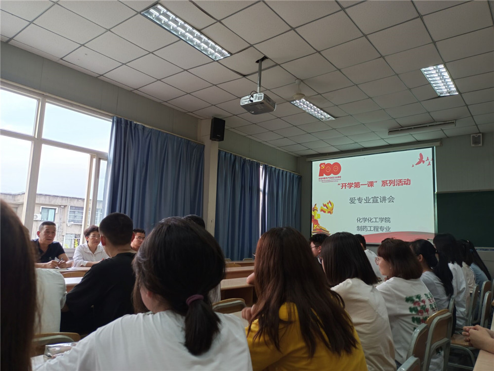 为了使2021级新生尽快熟悉自己所学专业,引导同学们树立良好的人生观和价值观,做好人生规划,9月2日,制药工程系召开2021级“师生见面会”暨“开学第一课”主题教育活动。活动由制药工程系主任黄九林老师主持,太阳成集团tyc33455cc官方网站经理柳林,党总支书记王永东,副经理黄婷,制药工程系部分教师和全体新生参加了此次活动。