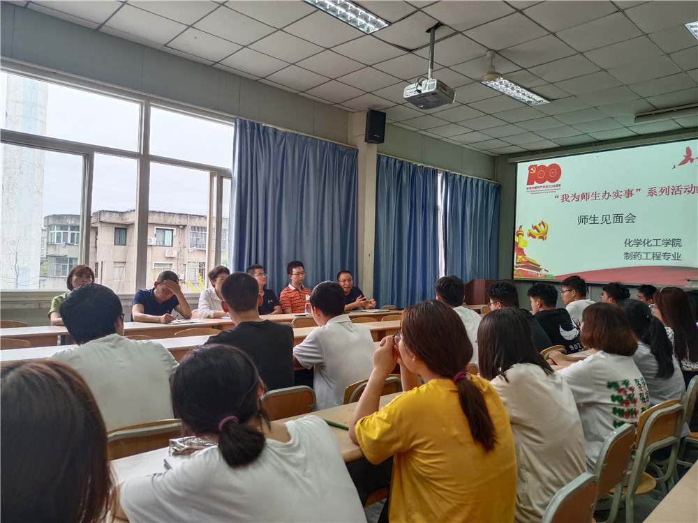 “师生见面会”上,黄九林老师首先介绍了制药工程专业的发展历史、专业定位、专业特色优势以及本专业往届员工就业考研情况。参会教师介绍了自己所带课程,科研方向和对新生的期望。师生互动环节,同学们踊跃提问,参会教师详细解答员工所提出的问题,细心为同学们解惑。黄婷副经理给同学们介绍了公司第二课堂的设置,学业导师和科研社团的情况,鼓励同学们积极参与学科竞赛和各类科研项目。柳林经理鼓励同学们在学习之余通过各社团活动增强个人的情感道德价值观,做一个全面发展的人。最后,王永东书记对本次活动做了总结,期望同学们能脚踏实地,善于思考学习,努力充实四年老员工活。