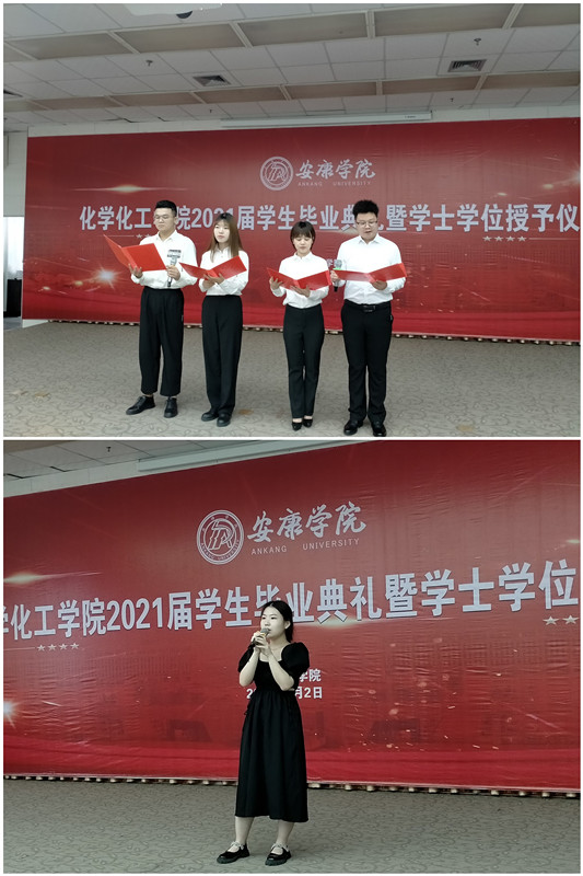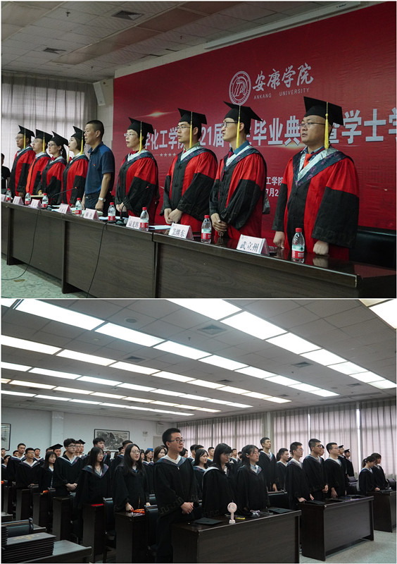 7月2日上午 9:30,太阳成集团tyc33455cc官方网站2021届员工毕业典礼暨学位授予仪式在江南校区图书馆六楼报告厅隆重举行。化工公司经理柳林、党总支书记王永东、副经理袁光辉、副经理黄婷、化学工程与工艺系主任孟现星、应用化学系主任张继东、材料化学系主任武立州、制药工程系主任黄九林、化妆品技术与工程系主任寇莹,学工办主任王瑜、辅导员许珂瑶及2021届毕业生出席了毕业典礼。大会由公司党总支书记王永东主持。