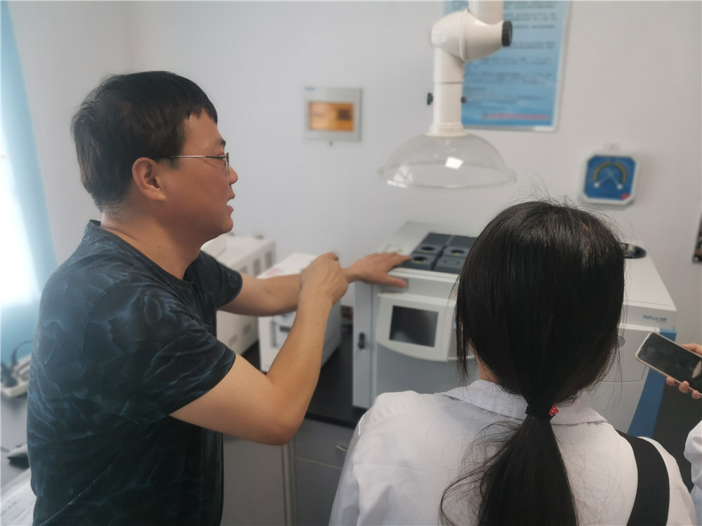 陕西地矿安康秦汉实验检测有限公司隶属于陕西地矿第一地质队,该公司经过六十余年的建设和发展成为区域内综合性检验检测机构,设有化学分析、光谱分析、岩矿鉴定、环境监测、食品医药检测、材料检测、农产品检测等。见习期间,在企业工程师的带领下,同学们还分别参观了挥发性有机物处理室、电感耦合等离子体质谱室、离子色谱室、红外测油室和气相室,熟悉了等离子体质谱仪、离子色谱仪、气象色谱仪、原子荧光仪等各类大型精密仪器设备的技术特点和应用范围。在整个见习过程中,同学们结合已掌握的基本理论积极提问请教,对所学内容有了更直观的认识和更深层次的理解,现场气氛活跃。
