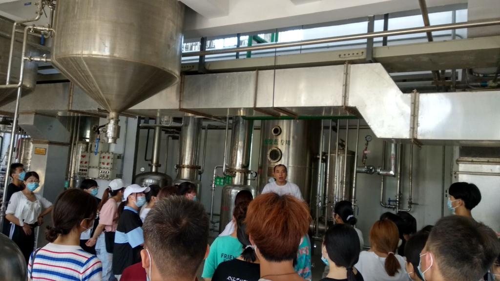 见习期间,员工观看了企业宣传片,参观了企业展厅,了解了企业中药材GAP种植、药品研发、生产及销售的基本情况。企业工程师带领同学们分别参观了公司的提取车间及研发中心实验室的精密分析仪器,详细介绍了公司特色产品“绞股蓝总苷胶囊”和“乳康胶囊”的提取、分离、制剂生产及质量控制的全过程。在整个见习过程中,同学们结合课本所学向企业技术人员积极提问请教,企业技术人员就具体问题作了耐心细致的讲解和回答,现场交流互动热烈。
