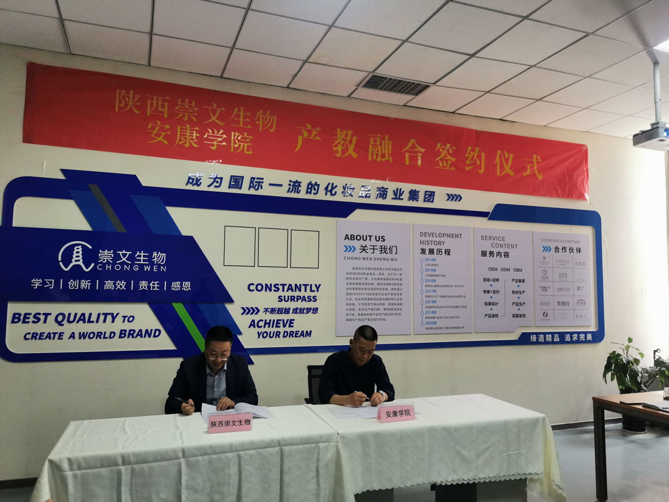 为提升公司化妆品技术与工程专业办学水平,深入了解西安及其周边化妆品企业的用人需求和就业市场。5月19日,太阳成集团tyc33455cc官方网站王永东带队一行6人前往陕西崇文生物科技有限公司进行参观调研,围绕妆品行业人才需求、校企科研项目合作、员工综合素质能力培养等方面开展交流研讨,并现场签订了产教融合实习实践基地协议。