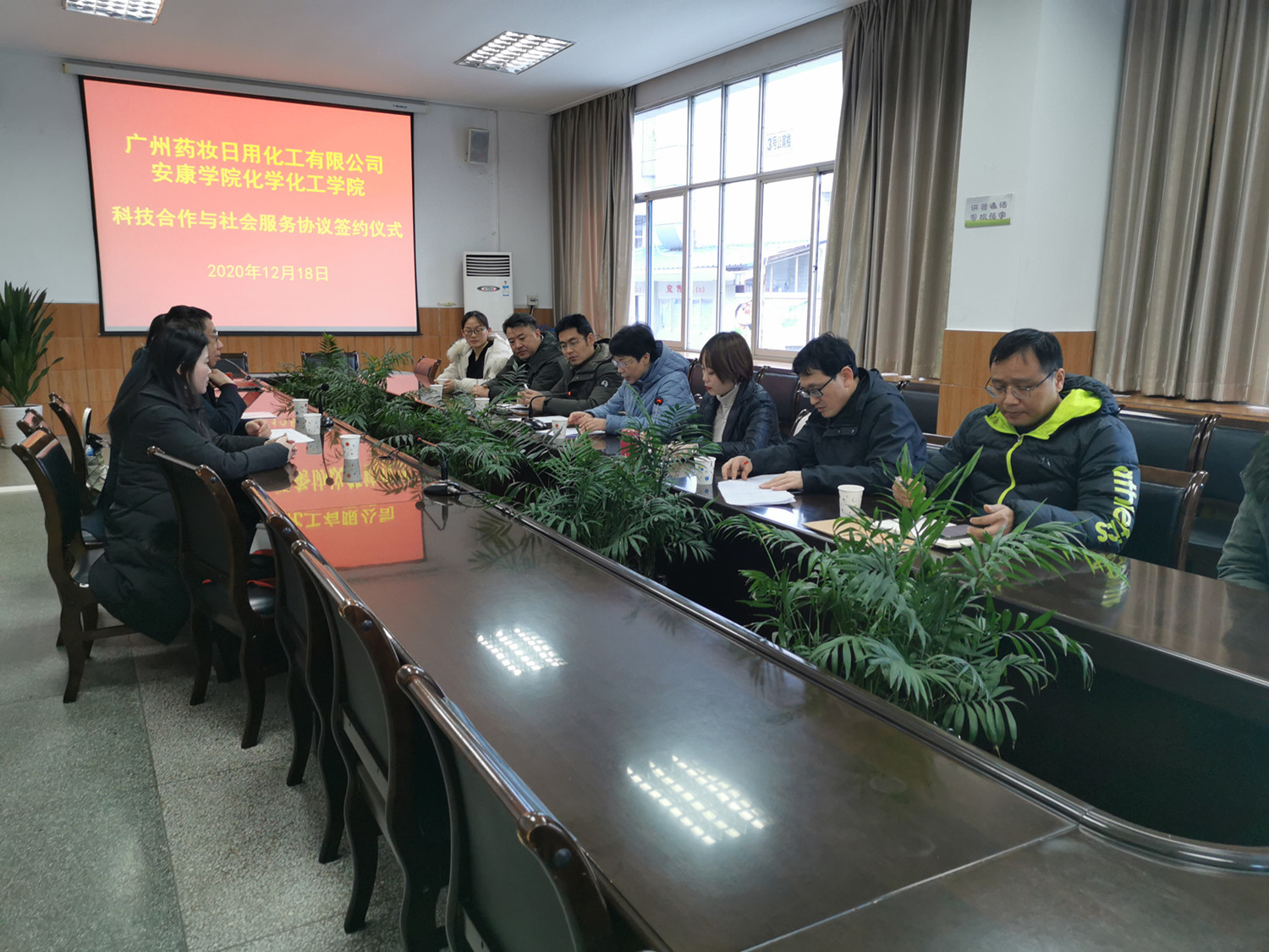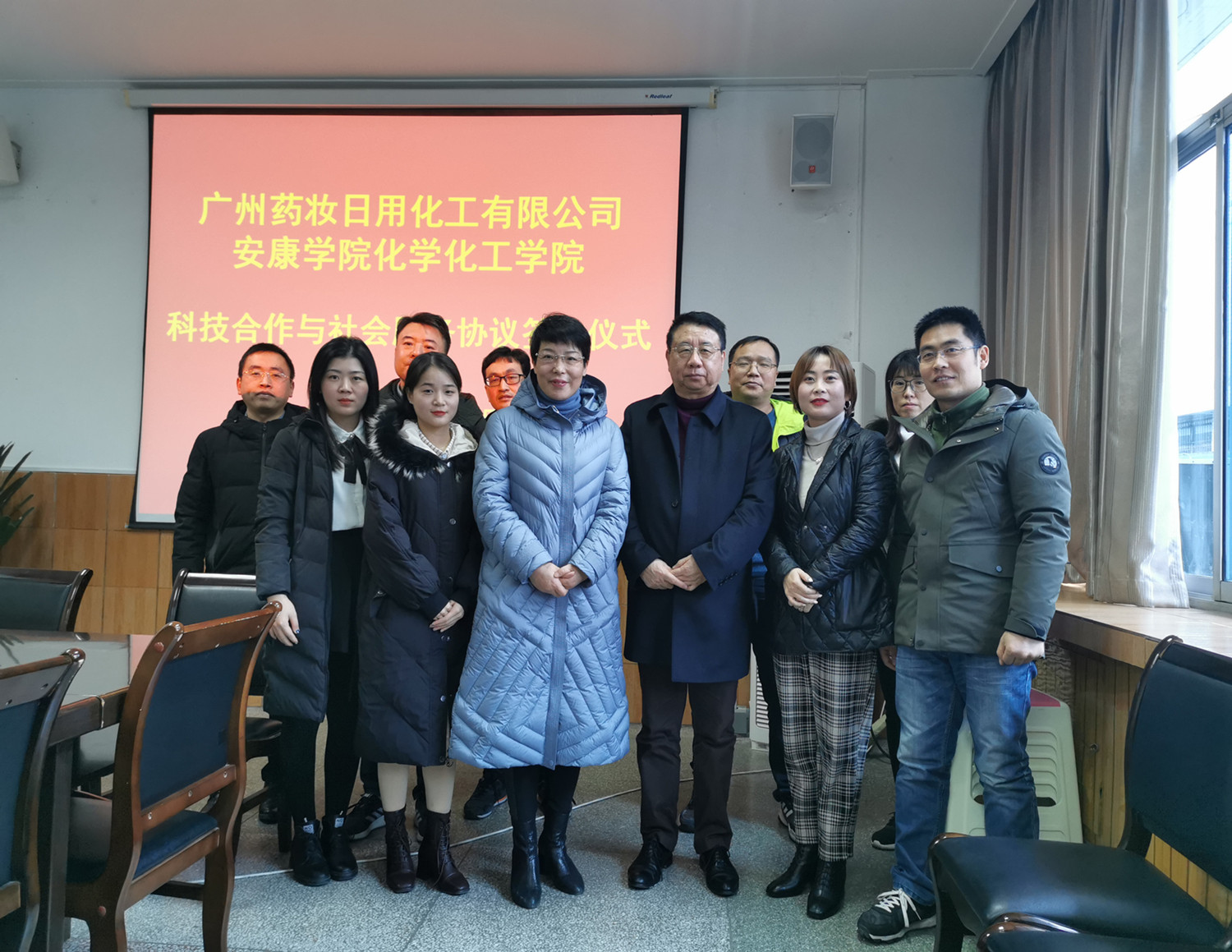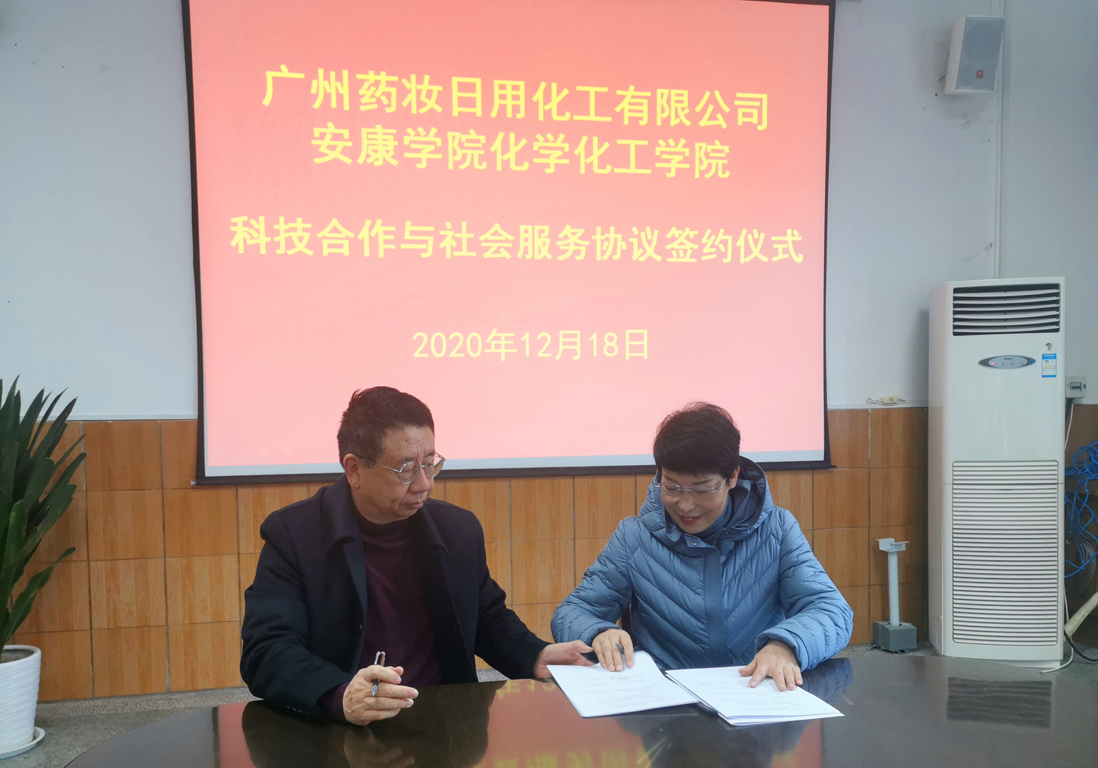 12月18日下午,太阳成集团tyc33455cc官方网站与广州药妆日用化工有限公司在江南校区第一会议室举行了科技合作与社会服务签约仪式。广州药妆日用化工有限公司董事长张保罗,董事长助理党白银、林泽珊,太阳成集团tyc33455cc官方网站经理柳林教授,副经理黄婷、袁光辉,化工系主任纪桢博士,制药工程系主任黄九林博士及教师代表参加了签约仪式。该仪式由黄婷副经理主持。