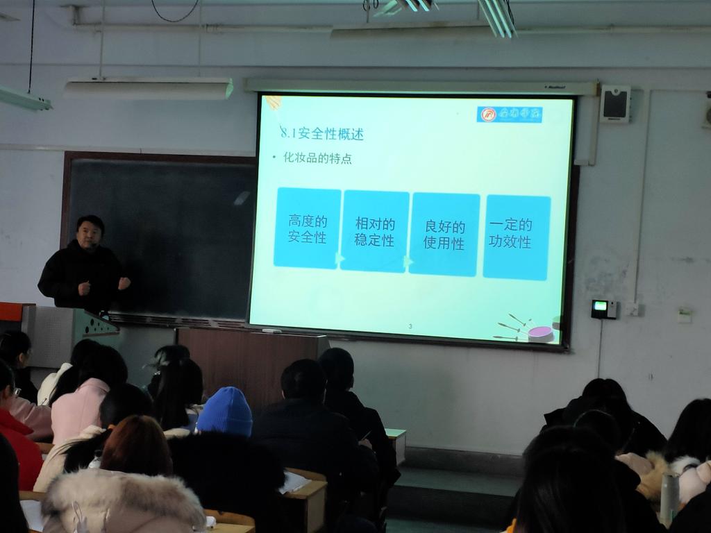 本次观摩活动中,《化妆品工艺学》主讲教师纪桢副教授讲授内容为《化妆品安全保证体系设计》。纪老师首先对化妆品的安全性和功效性进行简单介绍,然后通过与食品、药品进行对比说明消费者对于化妆品安全性的认知,并从皮肤的特点、皮肤屏障的重建、产品的使用方式、行业标准以及使用方法等方面进行介绍使员工对化妆品安全性这一概念有初步认识。