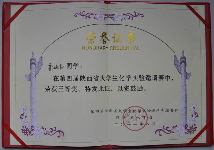 2011年8月17日至20日,由陕西省化学会、陕西省高等公司化学实验教学中心联席会主办,陕西科技大学承办的陕西省第四届老员工化学实验邀请赛在陕西科技大学举行。本次竞赛,共有来自西北大学、陕西师范大学、西北农林科技大学、西北工业大学等17所高校的100多名师生参加。
