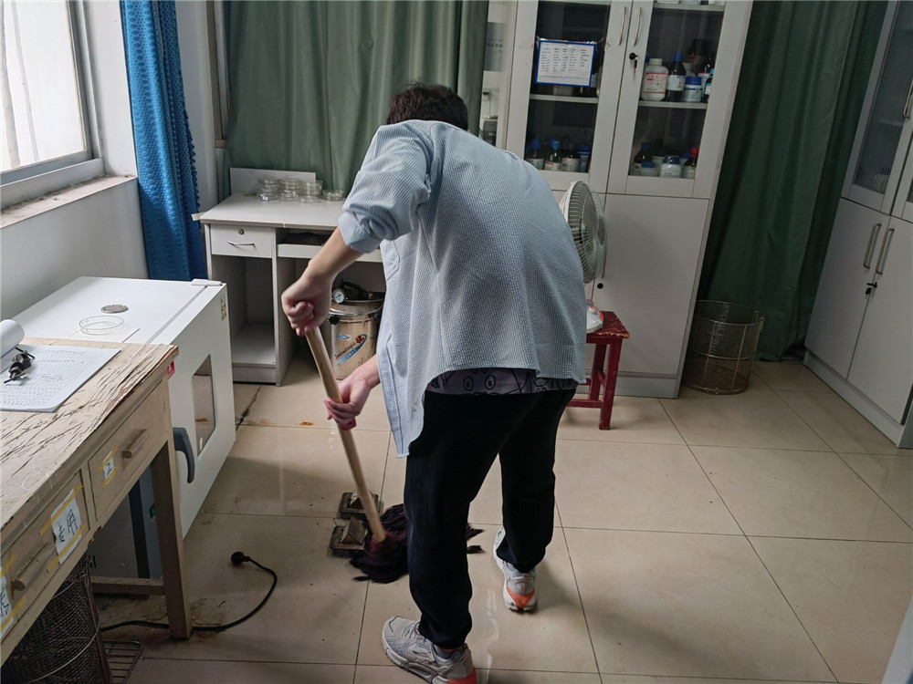 活动开展期间,2020级所有同学在各组组长的组织带领下,协助实验室管理老师对实验室进行打扫。在打扫的过程中,同学们热情饱满,积极主动地拿起清扫工具,仔细擦拭仪器、窗台,认真清扫地面灰尘,不放过任何一个落尘角落。