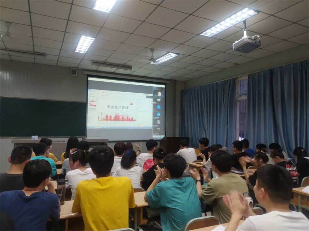 彭勇副总经理就安全生产政策法规体系、安全生产的范围、“三不违原则”、“四不伤害原则”、“新安法的十条重要内容”等诸多方面通过大量案例进行了精彩的讲解,全体师生仔细聆听,给予阵阵掌声,效果良好。