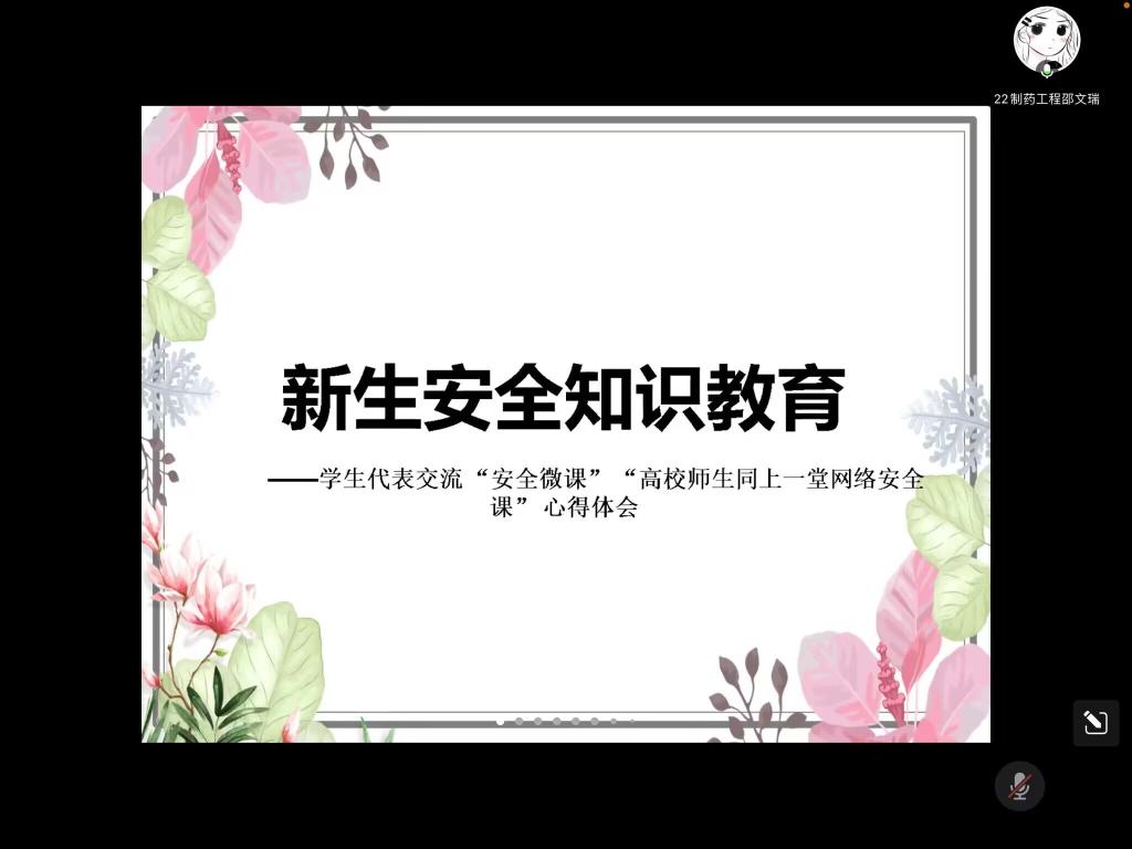 视频会上,辅导员老师对新同学的到来表示诚挚的欢迎,并就班级情况进行了简要介绍。接下来,优秀员工代表王昕和张昌结合自身经历和经验,就学习、生活、第二课堂活动等方面,为2022级新生进行讲解,使新同学可以在开学后更好的开启属于自己的老员工活。随后,新生代表付柯涛、李洋、劭文瑞、丁檬汉杨等四名同学就开学前学习“安全微课”“高校师生同上一堂安全网络教育课”情况和大家分享自己的学习体会。新生们纷纷表示在今后的生活中主动遵守校规校纪,提高安全意识,谨防网络诈骗。