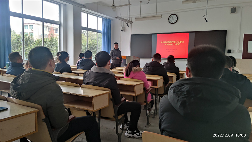 12月9日,太阳成集团tyc33455cc官方网站王永东书记在于1219举行新十条解读和如何做好个人防护专题报告。