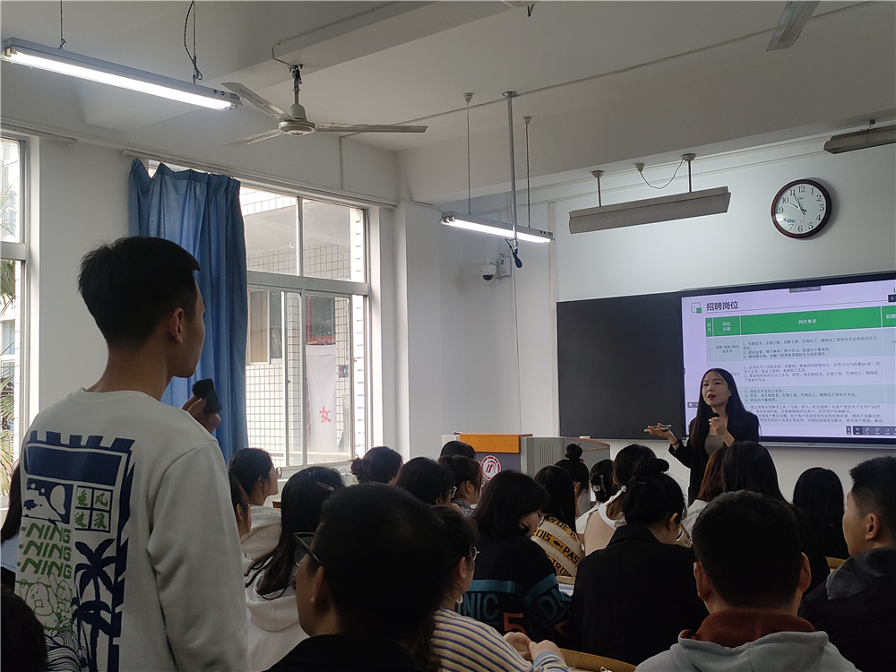 宣讲会上,企业的部门负责人详细地向同学们介绍了巨子生物的基本信息、来校提供的招聘岗位以及薪资福利,企业对提交了求职简历的同学进行一对一面试,公司2023届毕业生展现出积极地求职热情。
