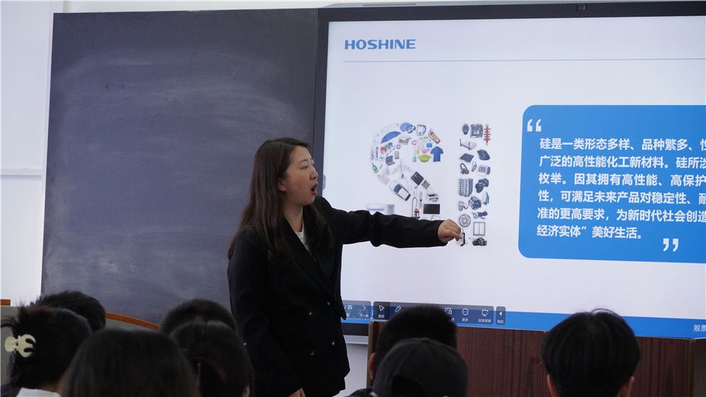 招聘会开始前,同学们观看了该浙江省嘉兴市城市宣传片,合盛硅业股份有限公司宣讲片。随后,人力资源部负责人王美静就关于我们、岗位需求及福利待遇等内容向同学们进行了详细的介绍。
