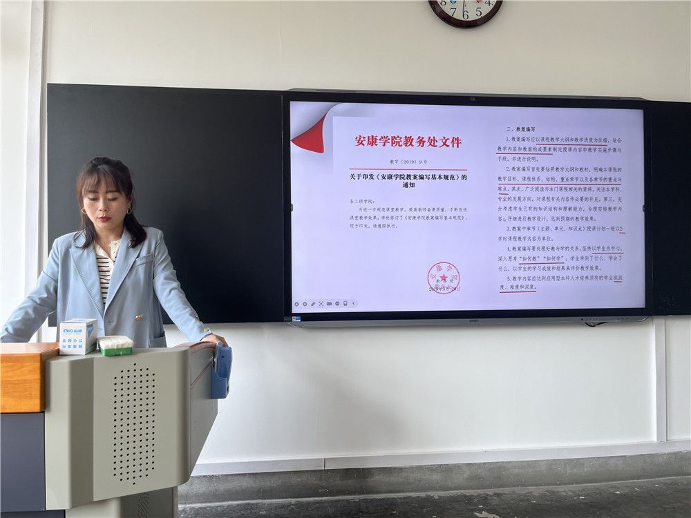 黄婷指出,规范教案有助于规范管理和教学质量的提高,提升教师特别是青年教师的教学水平,有助于青年教师成长,促进公司教师队伍建设,为迎接本科教学水平评估做好准备。