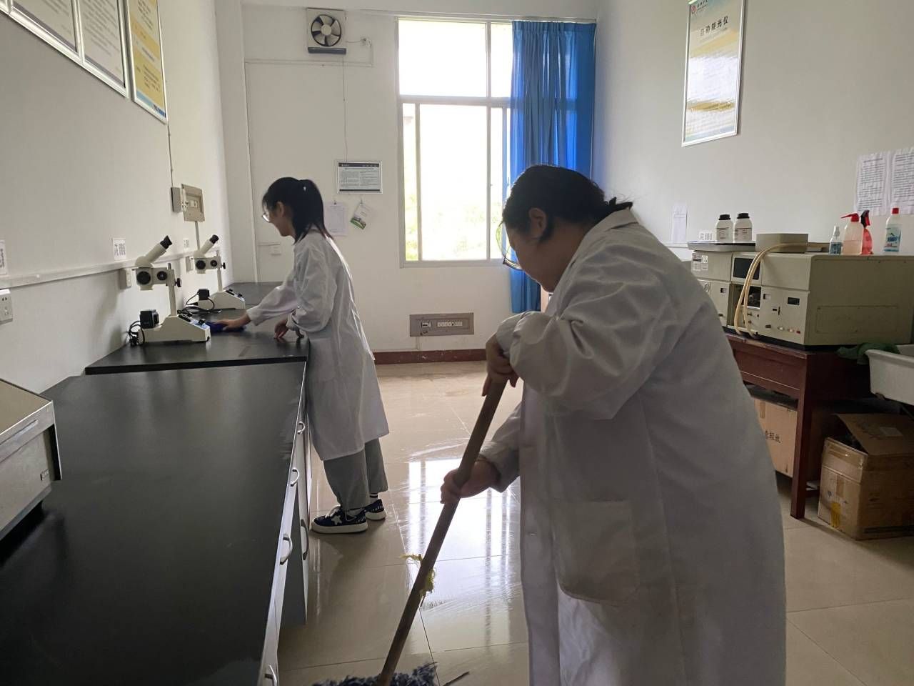 活动开展期间,2020级所有同学在各组组长的带领下井然有序的进入到负责的实验室,协助实验室管理老师对实验室进行打扫。在打扫过程中,同学们热情高涨、干劲十足、分工明确,积极拿起清扫工具,仔细擦拭仪器、桌面、窗台,认真清扫地面灰尘,丝毫不马虎,同时帮助老师统计药品数量并将其摆放整齐。在清扫完成之后,各组组长对打扫的情况进行检查,确保打扫干净,没有遗漏之处。