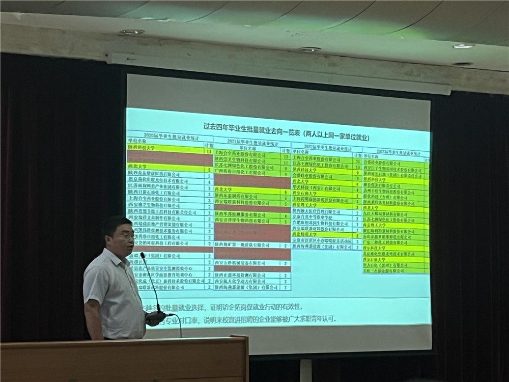 会上,辅导员于正豪结合化工行业发展情况和公司2020-2023年实习+就业工作的相关数据,进行了深入浅出的解读。他指出,公司专业对口就业占比逐年提高,越来越多的毕业生认可专业发展方向,并通过校园招聘会,找到合适自己的就业岗位。他建议同学们要树立正确的就业观念,把握好校园招聘的机会,找到适合自己的工作。