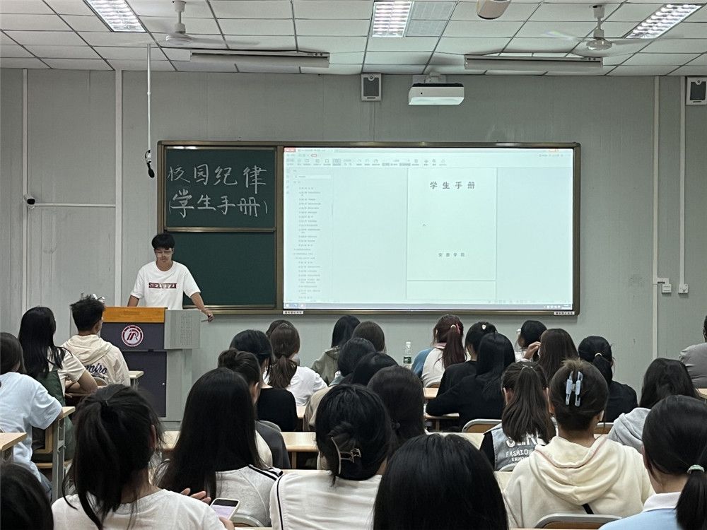 班会上,辅导员于正豪老师和各班班助重点解读了员工管考试作弊、违纪违规处理、学籍管理、课程考核及学士学位授予、评奖评优、家庭经济困难认定、德育考评和员工住宿等方面的内容,为同学们解答疑惑点和重要关注点,在师生互动中交流答疑,在答疑解惑中进一步明晰公司的规章制度和相关要求。