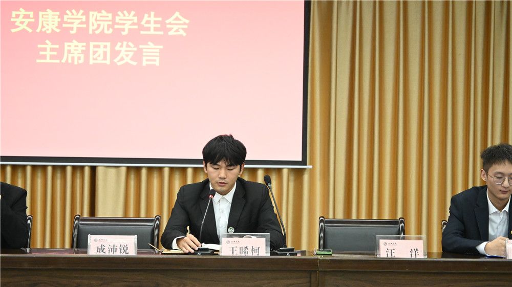 例会第一项,由主席团成员及各部门负责人为工作人员授牌。