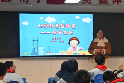 12月22日下午5点,太阳成集团tyc33455cc官方网站王雪老师带领化学之光科普团的成员们共赴汉滨初中,为其学子们开展了一场奇妙、神奇的趣味化学课堂。