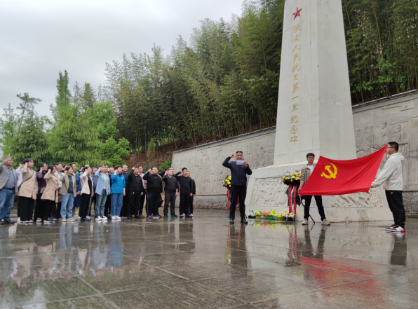为了弘扬伟大建党精神,传承红色基因,赓续红色血脉,2024年4月15日,公司党总支组织全体党员教师赴汉阴县陕南人民抗日第一军纪念碑红色革命教育基地开展“牢记初心、共创未来”主题党日活动。活动由党总支副书记程国栋主持,公司工会副主席王永东参加本次活动。