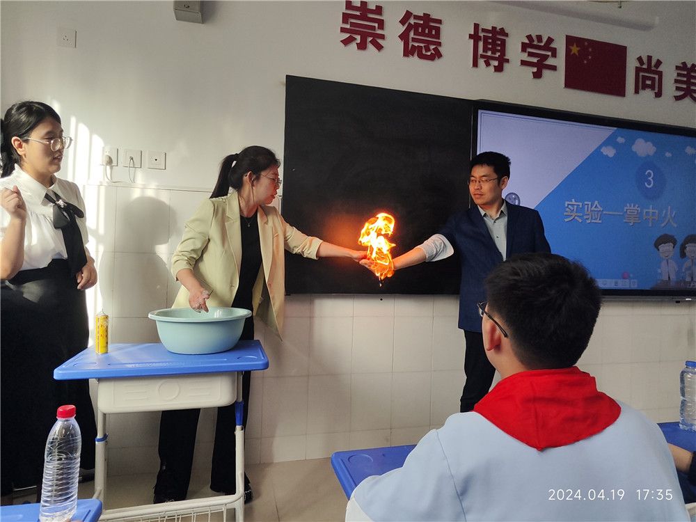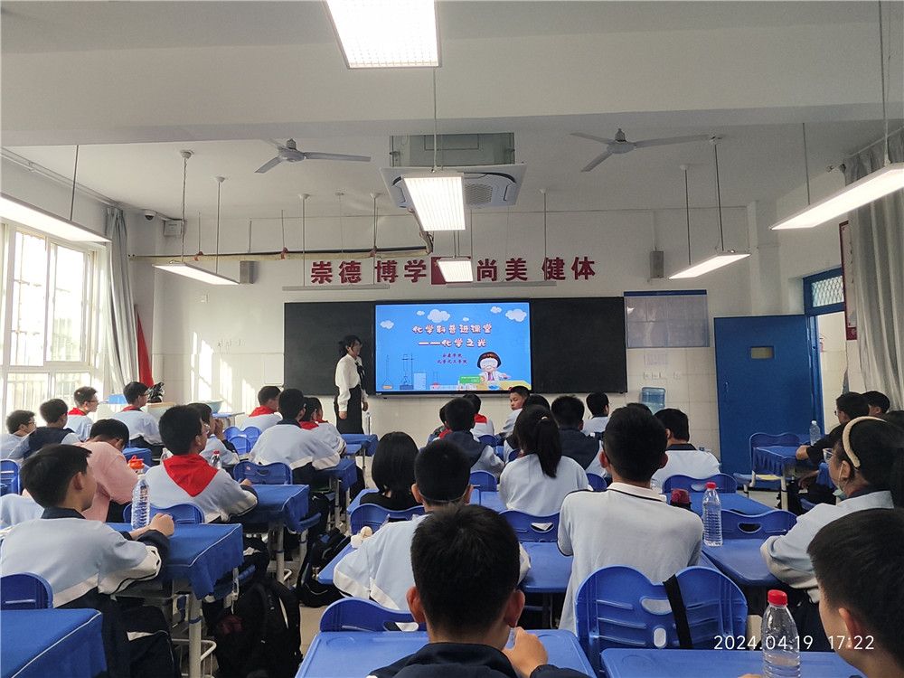 4月19日下午,“化学之光”科普团成员及部分员工党员在太阳成集团tyc33455cc官方网站副经理袁光辉、王雪、王晓林两位博士及员工党支部书记许珂瑶的带领下,赴汉滨初中(大桥路校区)开展科普志愿服务活动。