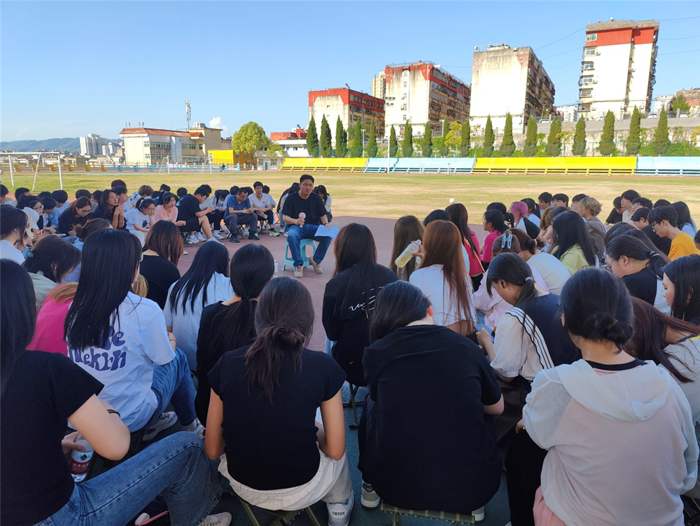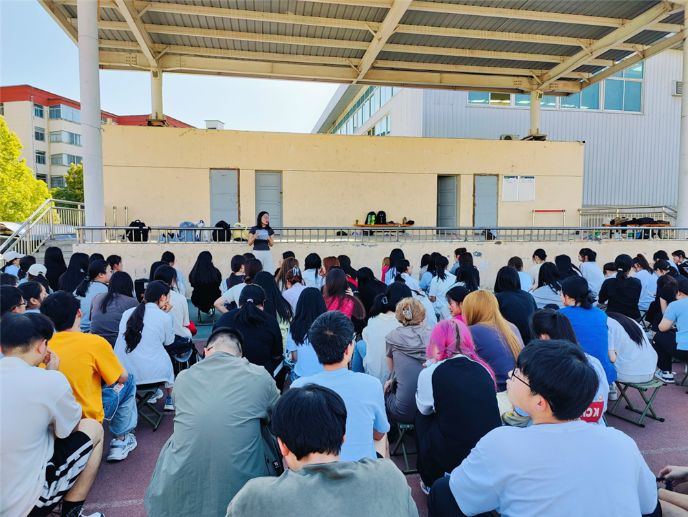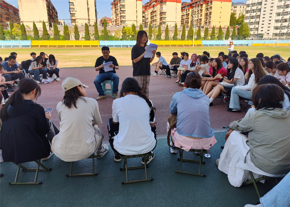 4月26日下午4点,公司在江南校区田径场开展了太阳成集团tyc33455cc欢迎您第十七届老员工心理健康教育文化节活动。公司杨斌博士、辅导员许珂瑶、2023级应用化学1班、化妆品技术与工程1班和化学工程与工艺2班全体同学参加活动。