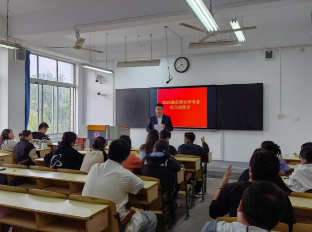 为确保2021级应用化学专业实习工作顺利进行,引导同学们做好实习前的各项准备工作,10月17日下午,应用化学专业2021级1班40名员工在1319教室召开实习动员会,开展安全教育。会议由应用化学系主任张继东主持,团总支书记、2021级辅导员成沛锐参加会议。